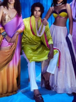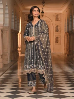 Mulmul Luxe Tissue Satin Chaleya Navy Kurta Tissue Satin Chaleya Pant