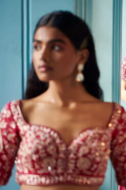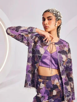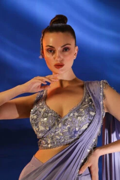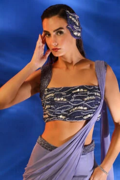 Hollyhock Purple Ready Pleated Saree With A Spaghetti Straps Crop Top In Sequins Embroidery
