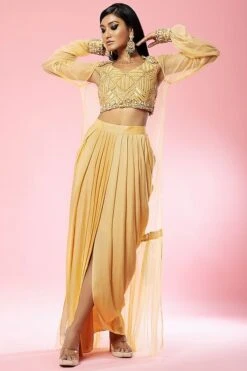 Sage Green Crepe Silk Hand Embroidered Pre-Stitched Saree Set