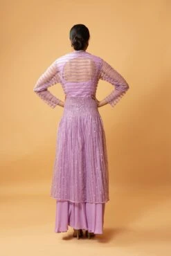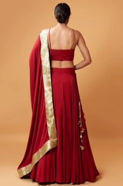 Ivory & Pink Modal Satin Ombre Pre-Draped Dress With Dupatta