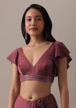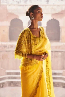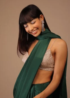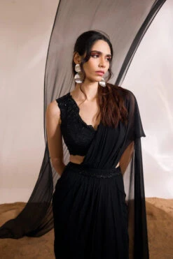 Dragonfly Embroidered Pearl Strap Blouse With Pre-Draped Frill Saree