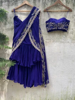 Hollyhock Purple Ready Pleated Saree With A Spaghetti Straps Crop Top In Sequins Embroidery