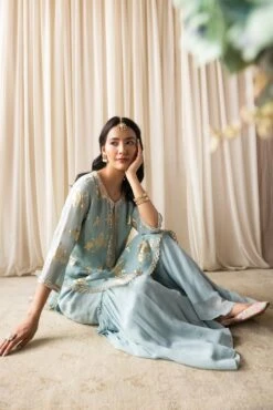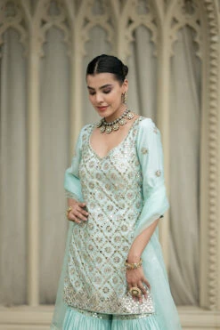Anisha Shety Dusky Pink Layered Sharara Set With Floral Sequin Jacket Size Large