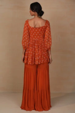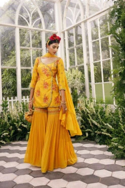 Silk Kurti With Sequin Embroidered Georgette Dupatta With Georgette Sharara