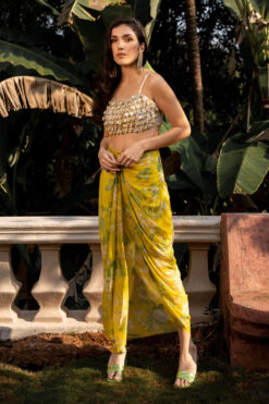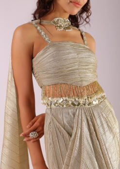 Glam Gold Pleated Skirt And Top With Embroidered Choker Dupatta