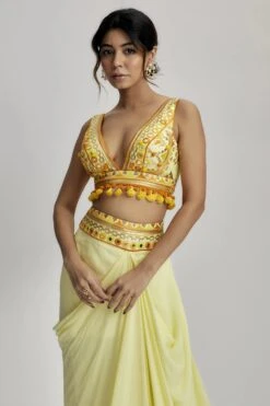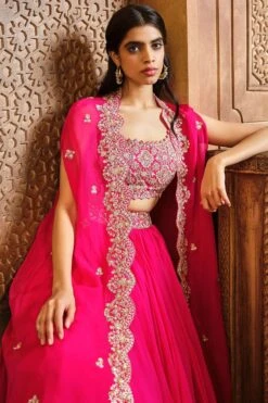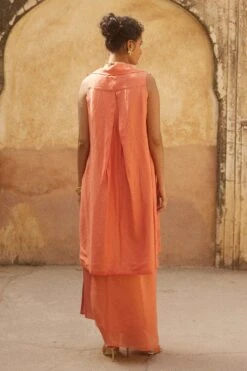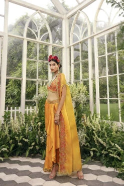 Silk Blouse With Silk Tissue Cape And Irish Satin Drape Skirt
