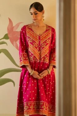 Purple Printed Embroidered Batwing Top With Draped Skirt Set