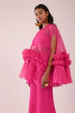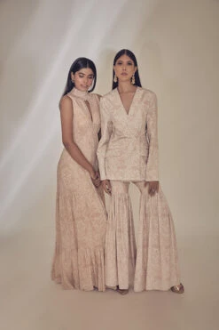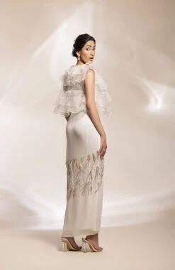 Silk Bustier Combined With Silk Jacket With Scallop Neckline And Cap Sleeve