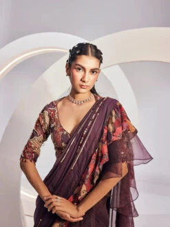 Mulmul Cupro Aarya Wine Kurta With Mulmul Cupro Aarya Wine Pant