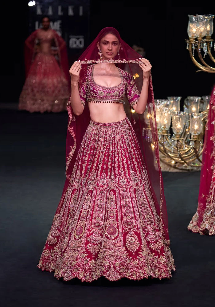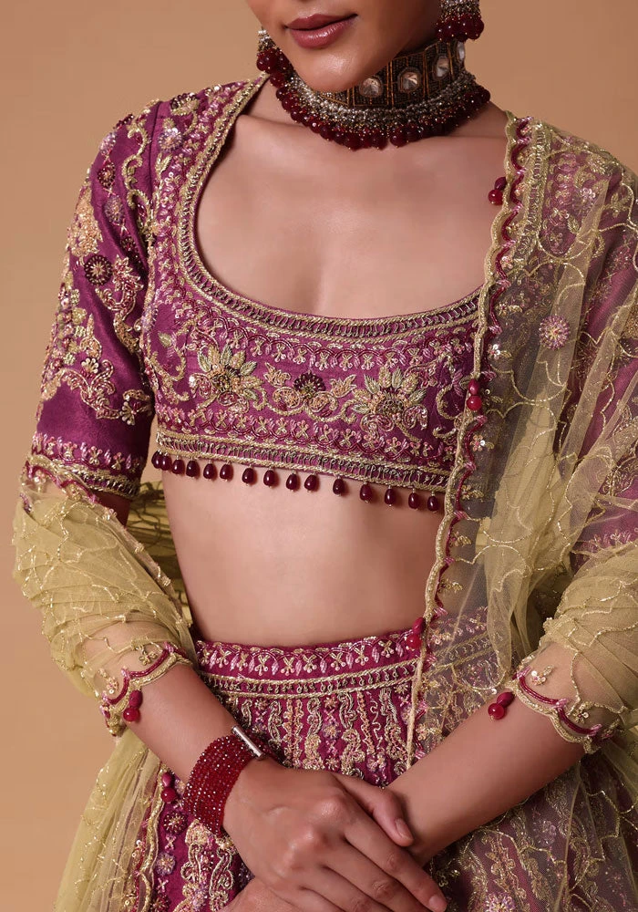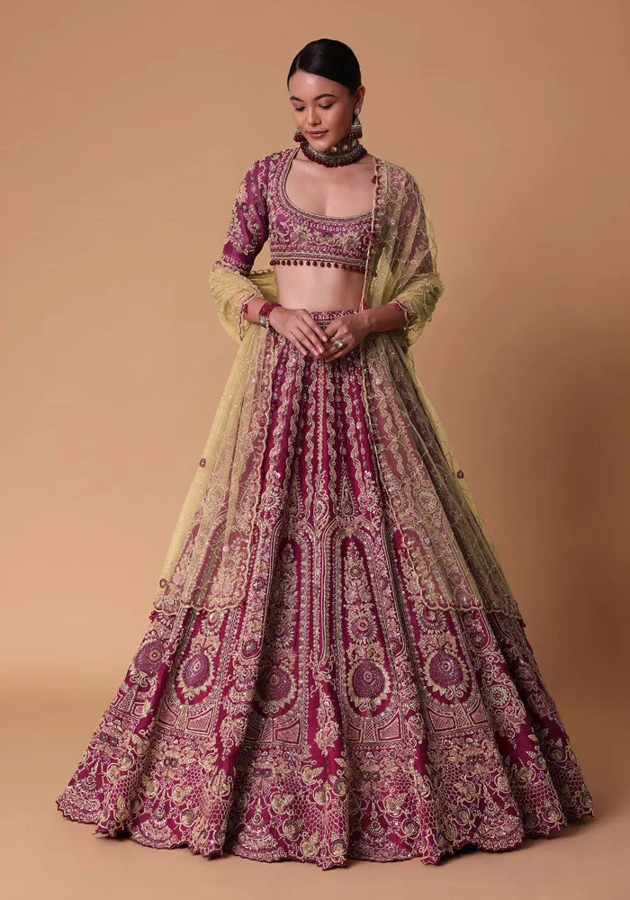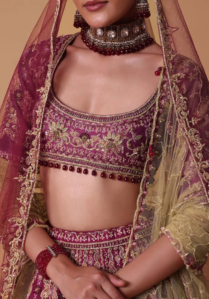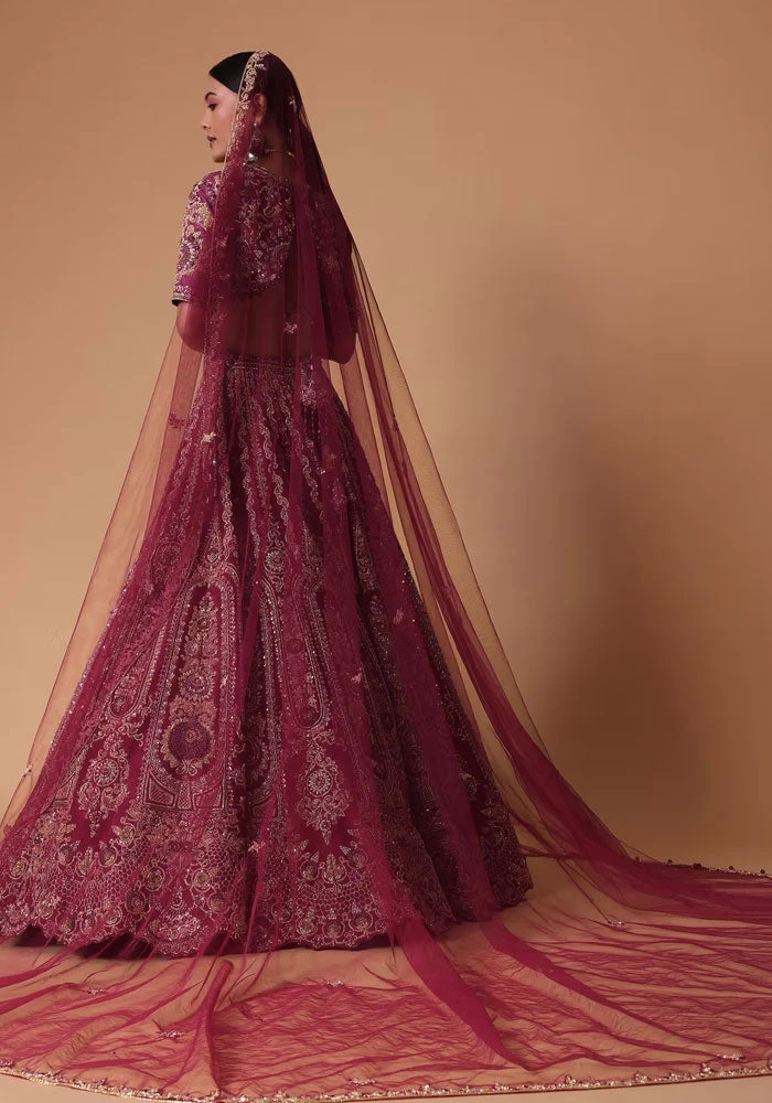 - Completed with two dupattas and enhanced with hand embellished beads and cutdana that add a touch of royal charm to your wedding look.