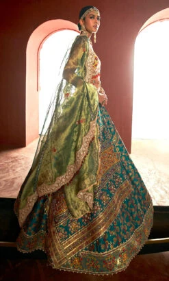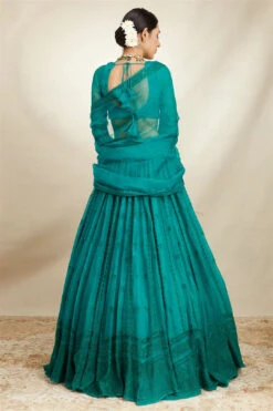 Teal Hand Embroidered Dupatta With Zardozdi Blouse And Silk Trousers