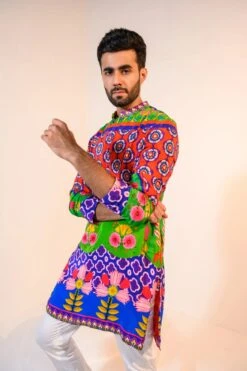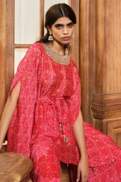 Vermilion Captivating Red Georgette Deep V Neck Kalidar Anarkali