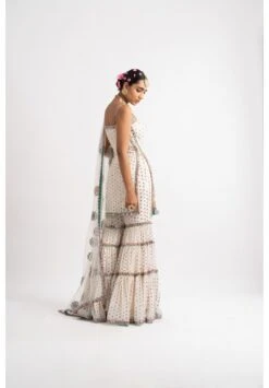 White Organza Kurta And Fusing Pants Set With Heavy Embroidered Overlapping Jacket
