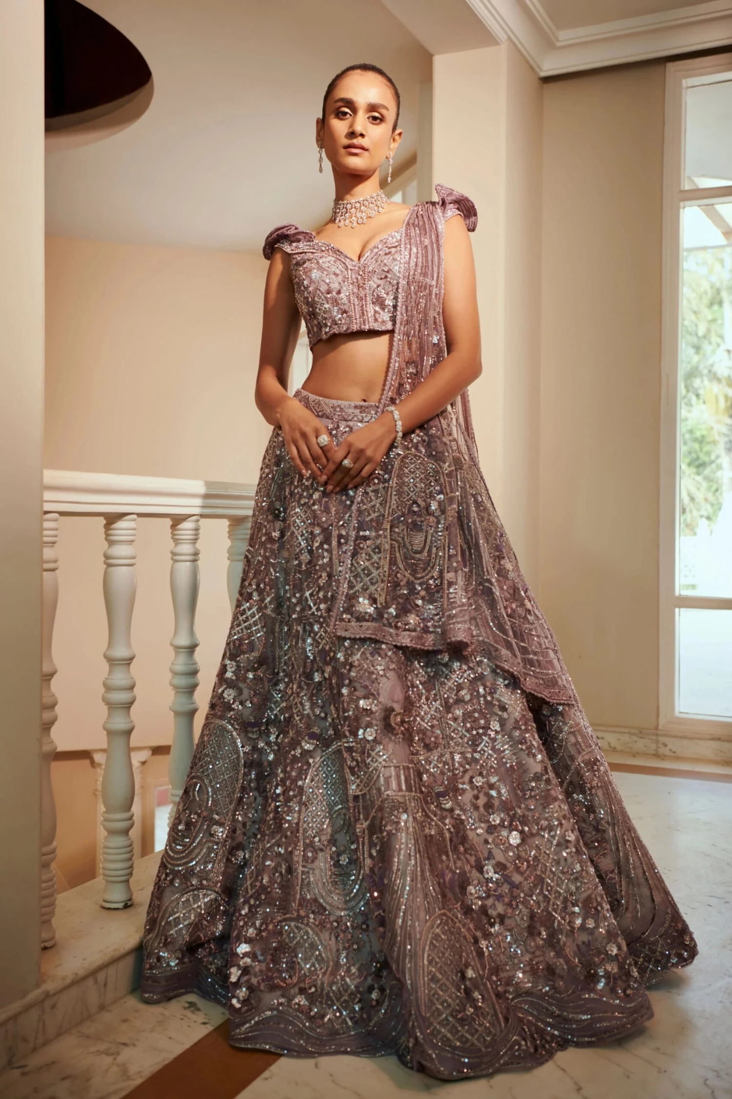 This Glittered Lehenga is enhanced with exciting motifs that are exuberant and diverse as nature itself.