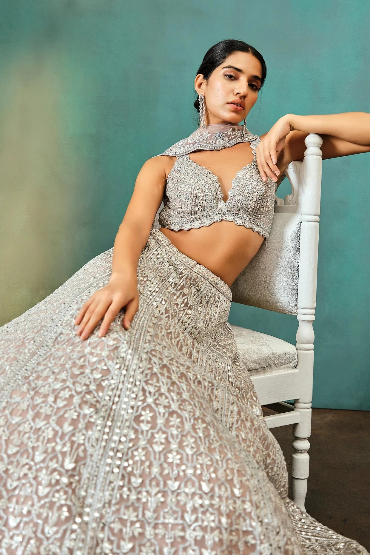 SKU: BGLSB 8078744060139 Categories: Aneesh Agarwaal, Shop By Designer (A - J), Womenswear Tags: Aneesh Agarwaal, Lehengas, Silver, SS23 Zehra
