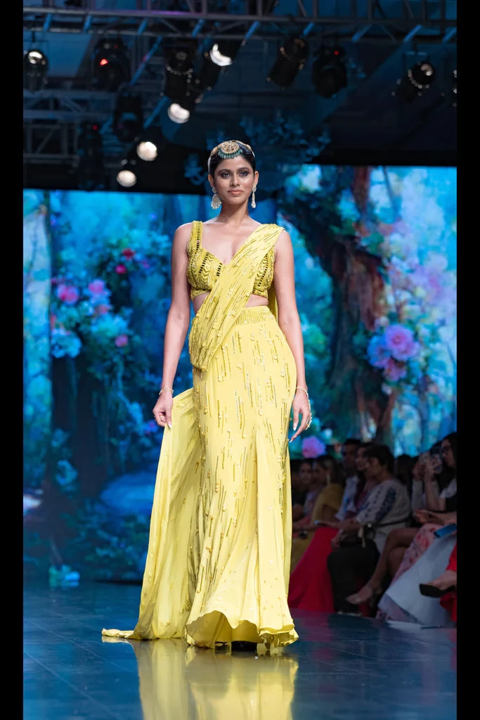 Saree : Crepe , Blouse : Net , Blouse Embroidery : Sequin Work & Salliwork & Acrylic Mirrorwork, Saree Embroidery : Sequin Work & Salliwork & Acrylic Mirrorwork, 3d Flower Beads