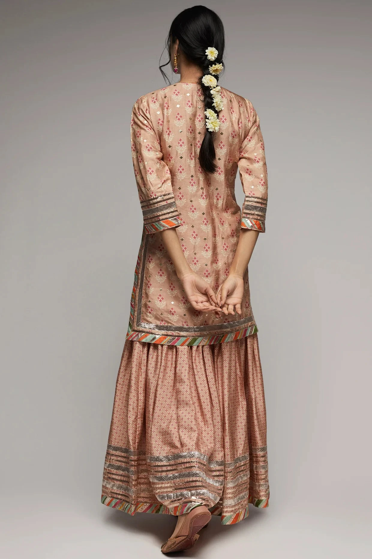 Featuring A Tilla Short Garara Set In A Sophisticated Toned Down Hue, The Embroidered Short Kurta With Garara And Dupatta, Add Shimmer And A Richness To This Pretty Ensemble.