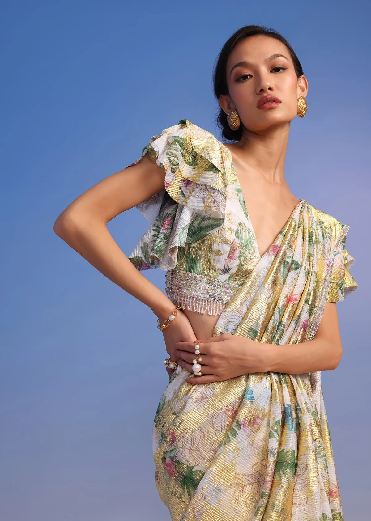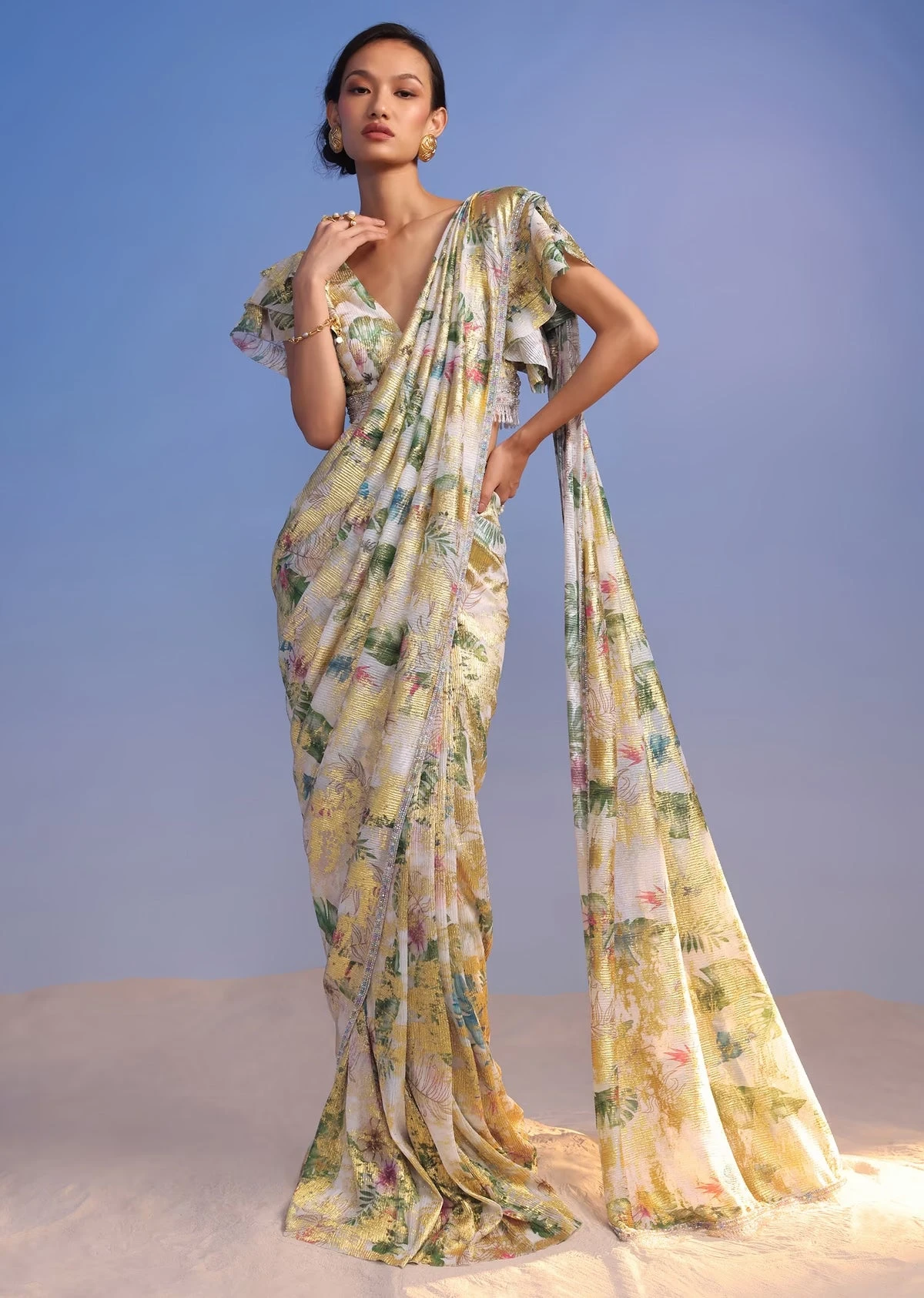 - Pack Contains: 1 Blouse, 1 Stitched Saree