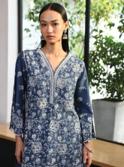Mulmul Cotton Norwich Navy Kurta With Norwich Navy Salwar Pant
