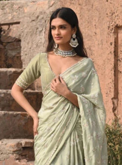 Mulmul Luxe Tissue Heer Sage Green Kurta With Mulmul Organza Satin Heer Sage Green Garara