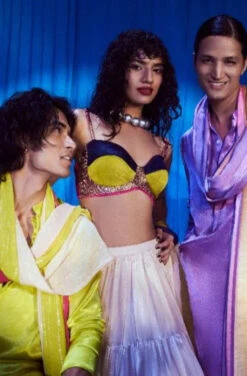 Orange Viscose Chinon Embellished Bead Cape Geometric Printed Draped Skirt Set