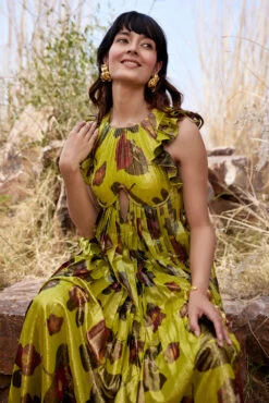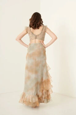 Sage Green Crepe Silk Hand Embroidered Pre-Stitched Saree Set