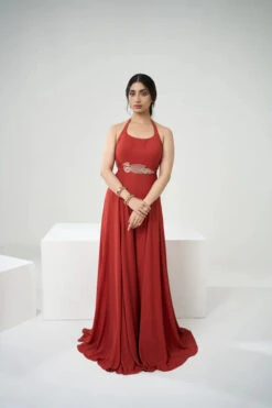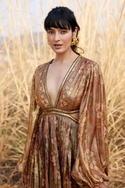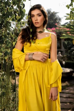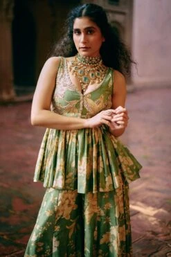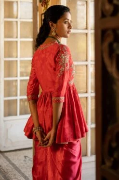 Self–Woven Russian Jacquard Peplum Set Paired With Satin Draped Skirt
