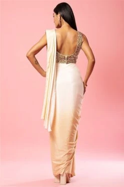 Ivory & Pink Modal Satin Ombre Pre-Draped Dress With Dupatta