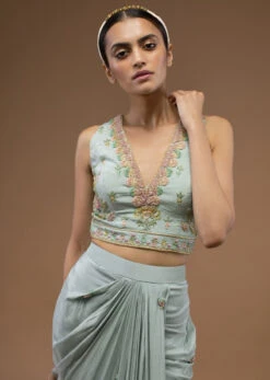 Hollyhock Purple Ready Pleated Saree With A Spaghetti Straps Crop Top In Sequins Embroidery