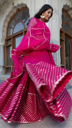 Mulmul Banarsi Gerua Pink Kurta With Mulmul Banarsi Gerua Pink Pant