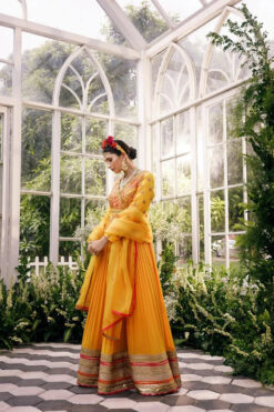 Anarkali With Silk Yoke With Scallop Neck Line Embroidered With Multi Colour Thread