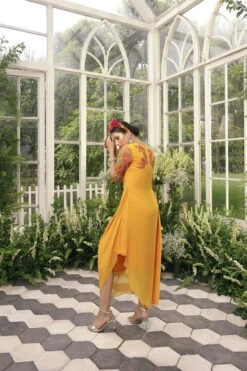 Fuschia Purple Shaded Pleated Cape With Embroidered Yoke And Sleeve